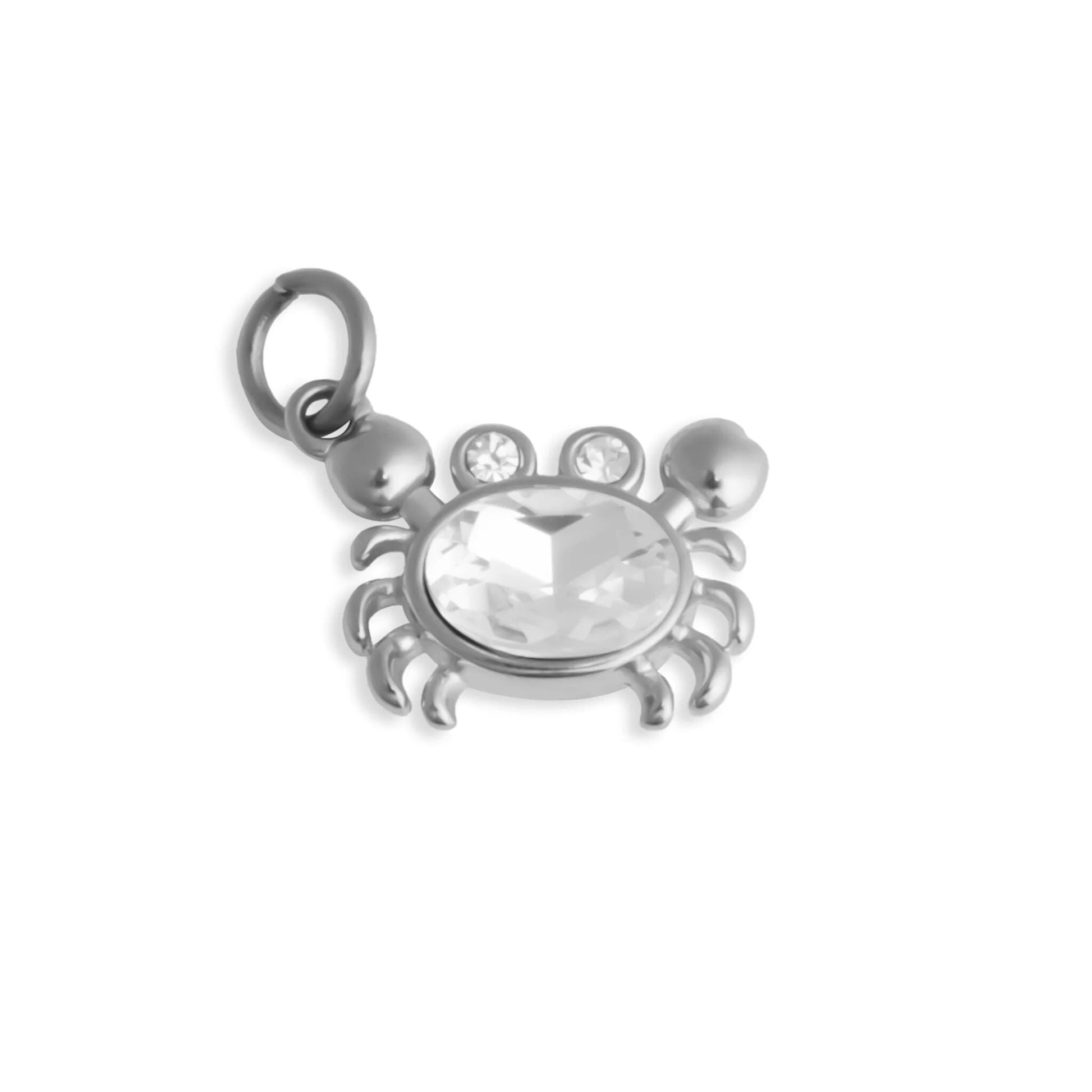 Bring coastal polish to your stack with a finely detailed stone crab charm crafted in hypoallergenic, medical‑grade stainless steel and finished in rich 18K Gold PVD for lasting, tarnish‑resistant shine. The hand‑sculpted motif adds texture and a unique seaside touch that stands out on its own or layers easily with other pieces, while a secure lobster clasp makes attachment to bracelets, necklaces, or anklets quick and worry‑free. Durable yet lightweight for comfortable all‑day wear, it transitions effortlessly from casual looks to dressier outfits.