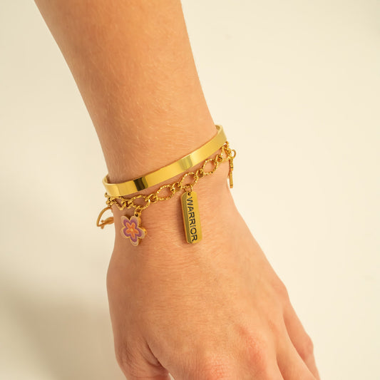 Strong, fearless, and unbreakable—this “Warrior” charm is a tribute to the fight within. Crafted from durable 18K Gold PVD stainless steel, it features a sleek, polished finish that stands the test of time. Whether you're honoring a personal battle or showing support for a loved one, this charm is a...